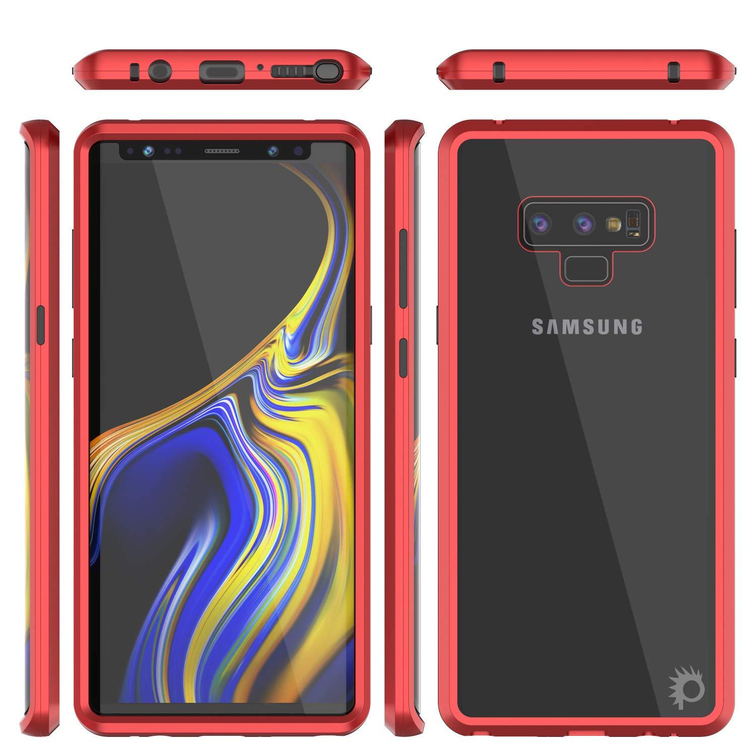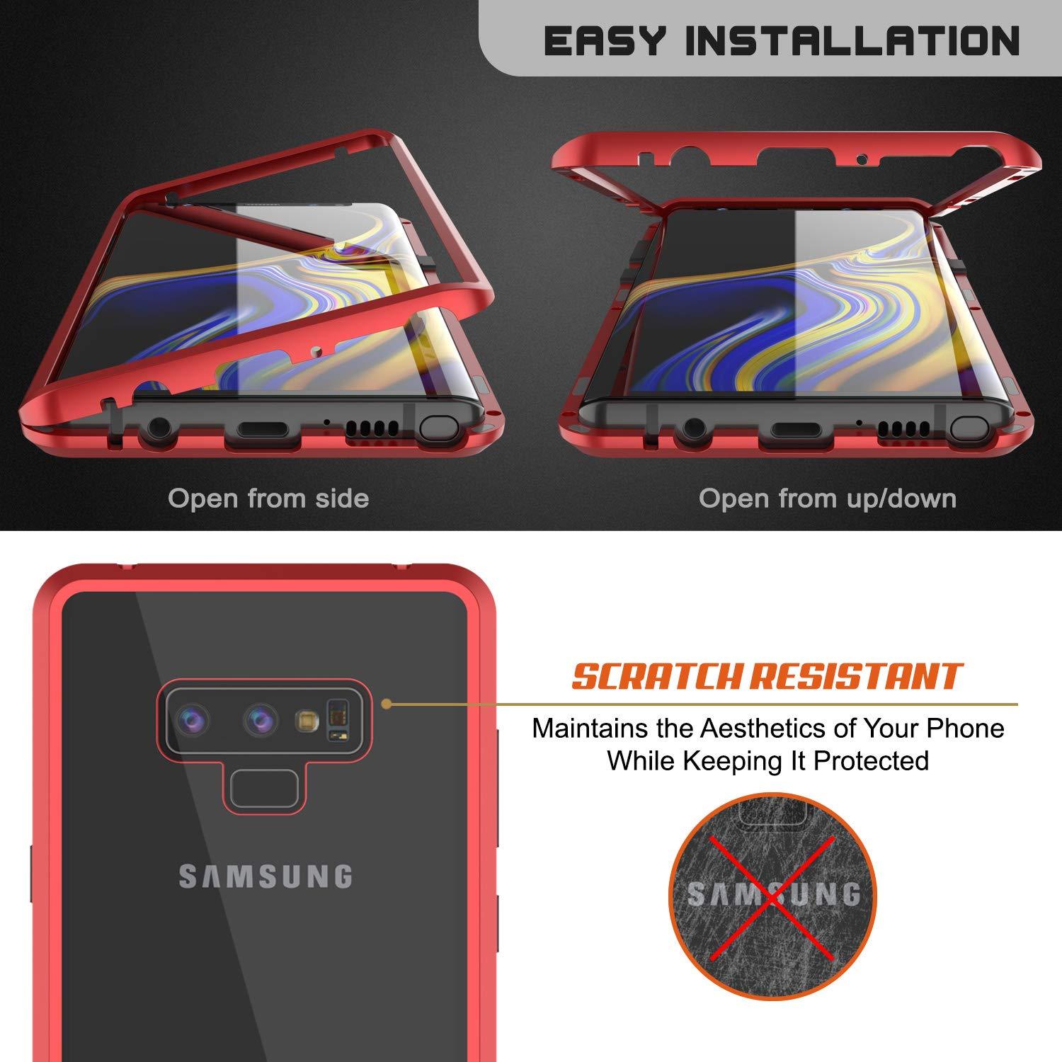 Punkcase Magnetic Shield, Protective Metal Frame Case W/TPU Layer | 9H Tempered Glass Clear Back & Attachable Screen Protector | Strong Magnetic Closure Compatible W/Samsung Galaxy Note 9 (Red)